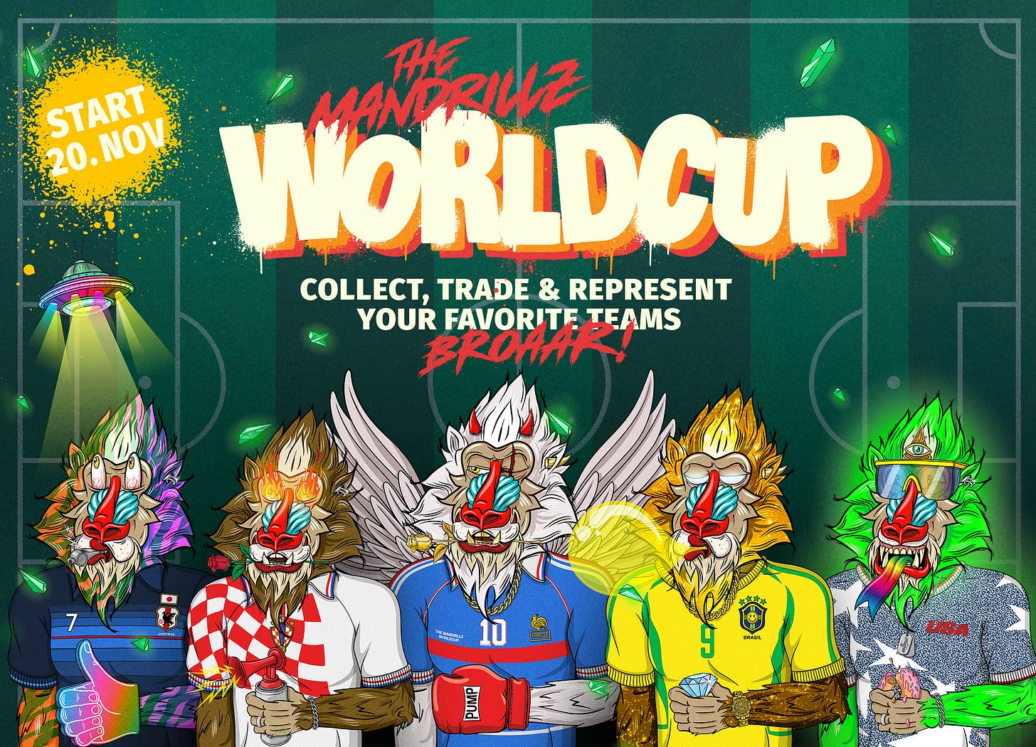 The Mandrillz World Cup might not have those expensive licences of real superstar football players but the Drillz wearing jerseys of the teams which qualified for the World Cup 2022 in Qatar have its very own charm + you actually own a unique card stored on the Cardano blockchain forever.