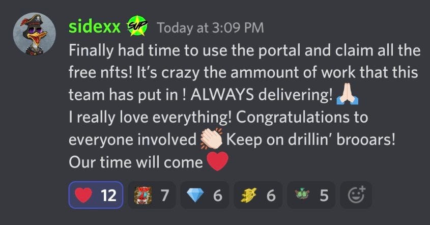On day 1 (for 24 hours) all holders of the True Homiez Discord role will get a free pack for every Mandrillz + Companion pairs they hold. If you hold 5 Drillz + 5 companions you will get 5 free packs of 6 NFTs each!